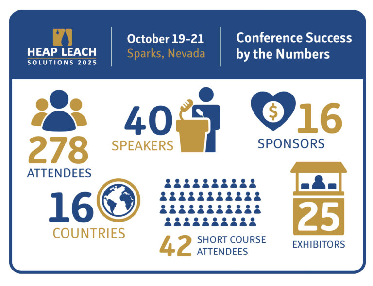 This Heap Leach Solutions (HLS25) conference was held in Sparks, Nevada. The conference was organized in partnership with the Mackay School of Engineering and Earth Sciences, which has educated generations of renowned scientists and engineers and has a long and proud history at the University of Nevada, Reno. Precious metal heap leaching also originated in the Reno area, and many technologies, including agglomeration of precious metal ores, were developed there.